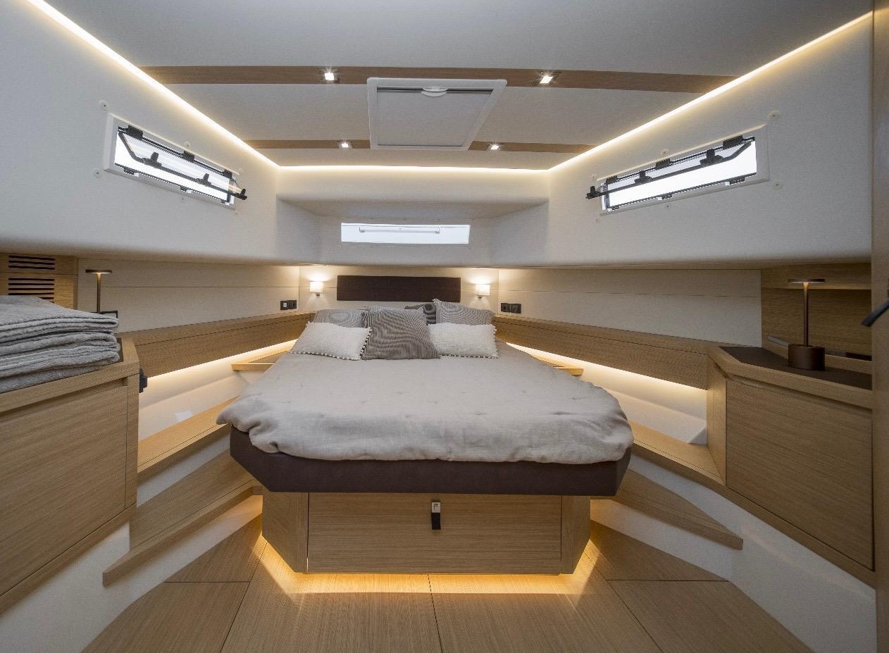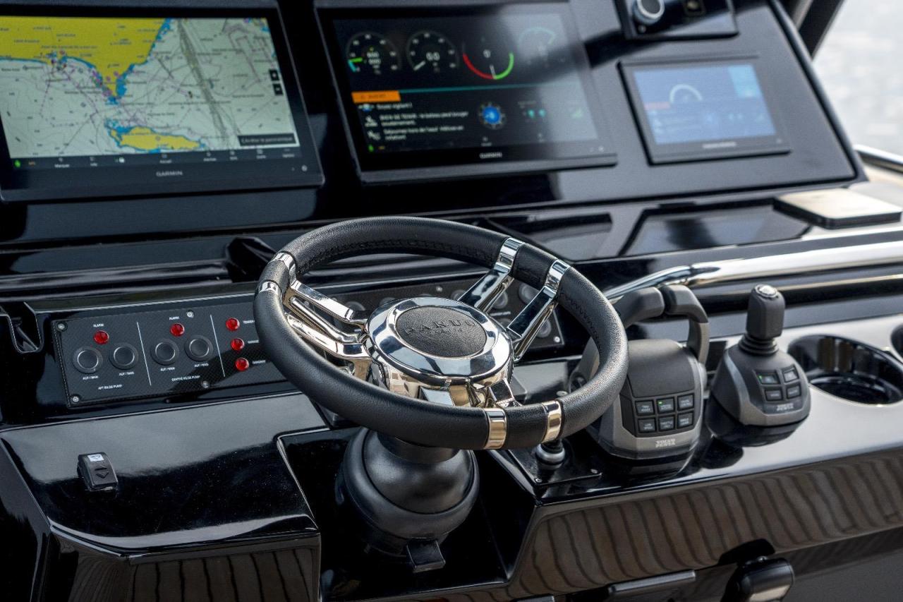 Comfort on board is elevated by a hydraulic swim platform, integrated gangway, electric bimini, and SeaSmart forward and aft sunshades. The full LED lighting package includes underwater lights for stunning evenings at anchor. A 100 L/h watermaker, ice maker, oven, built-in coffee machine, four refrigerators, a safe, and a powerful 9 kW generator complete this highly specced unit, allowing full autonomy and luxury living on the water.
