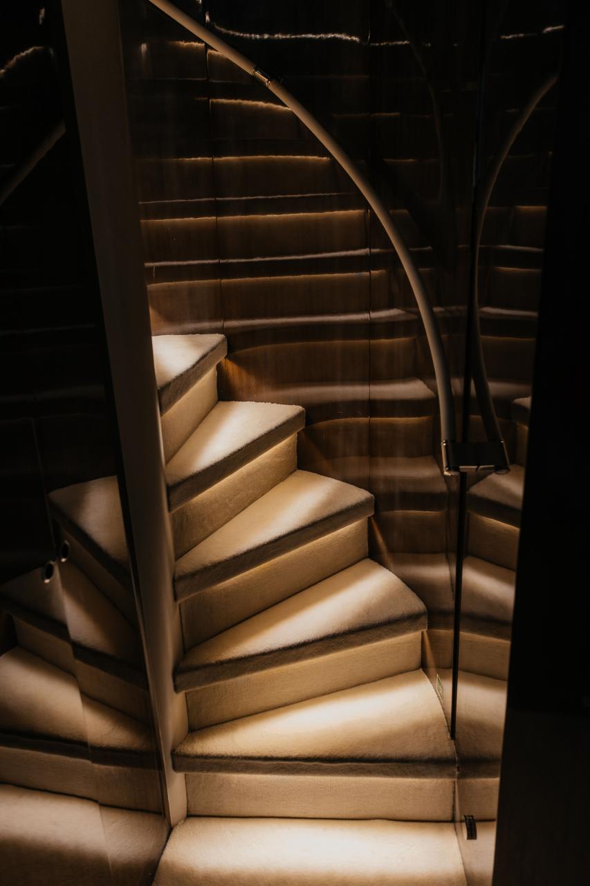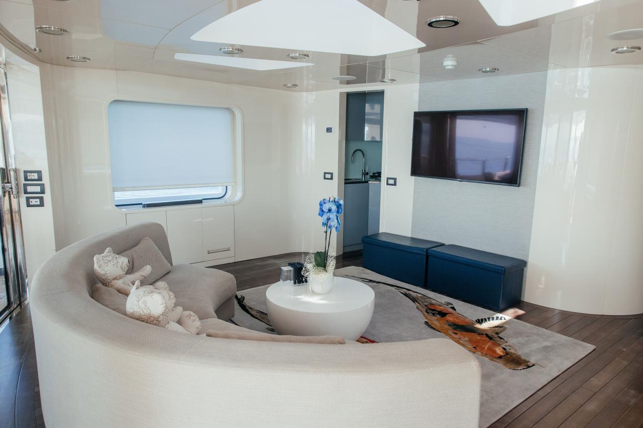 LADY IN BLUE accommodates ten guests in five staterooms, including a full-beam Owner’s suite, two doubles and two twins, all finished to a high standard. The yacht also features crew quarters for seven, ensuring discreet and professional service at all times.