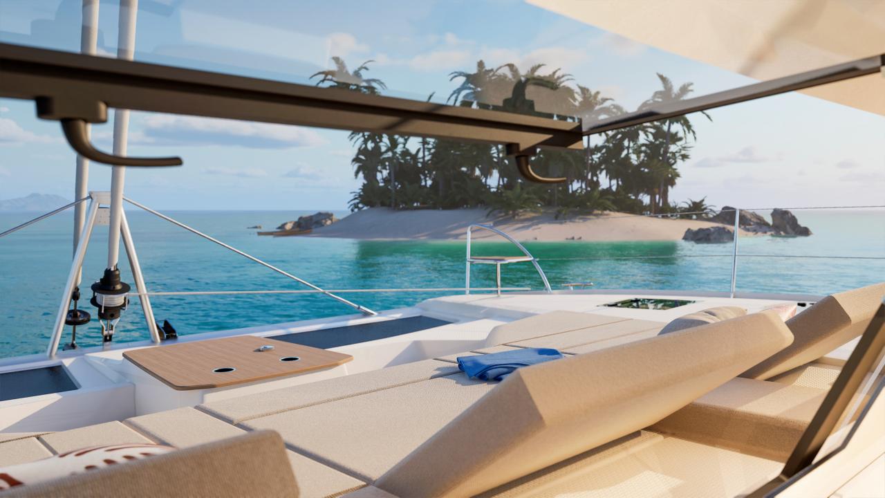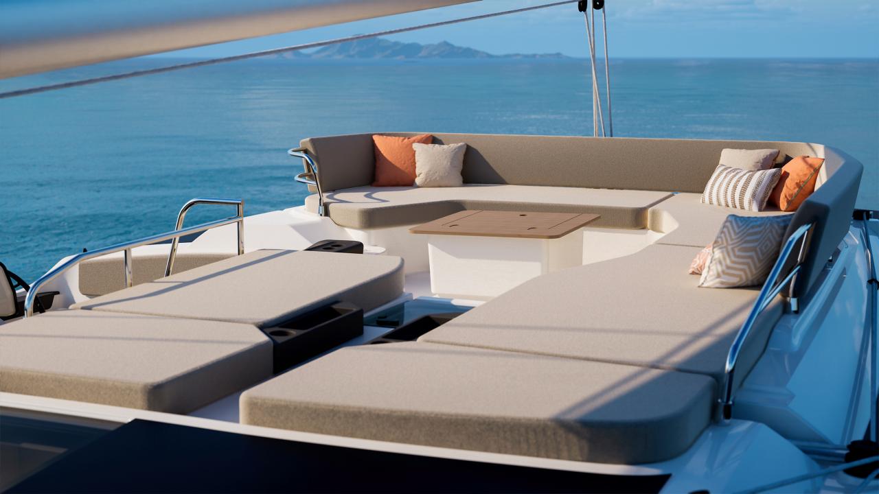 When it comes to navigation, stay connected with your surroundings thanks to the helm station in an intermediate position, which centralizes all maneuvers and expands your field of vision. The FP | 48 fits perfectly within the lineage of the range and its predecessors, remaining a high-performance catamaran that is easy to handle with a small crew.