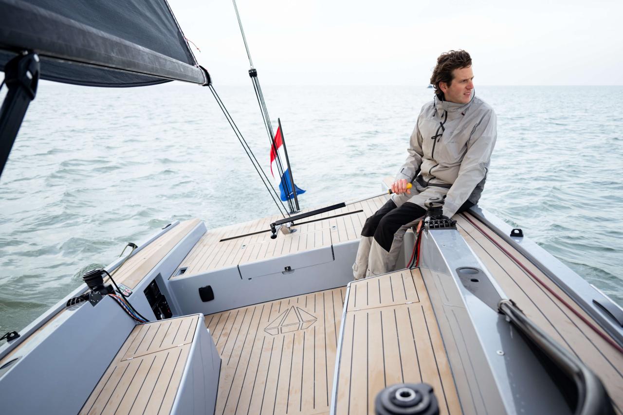 PERFORMANCE & DESIGN Its modern lines, wide beam, and flat underwater hull deliver speed, stability, and control in all conditions. An enhanced feeling of control at the helm, with improved performance in choppy seas—this boat is built for demanding sailors who refuse to compromise on the pleasure of sailing.