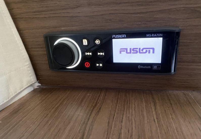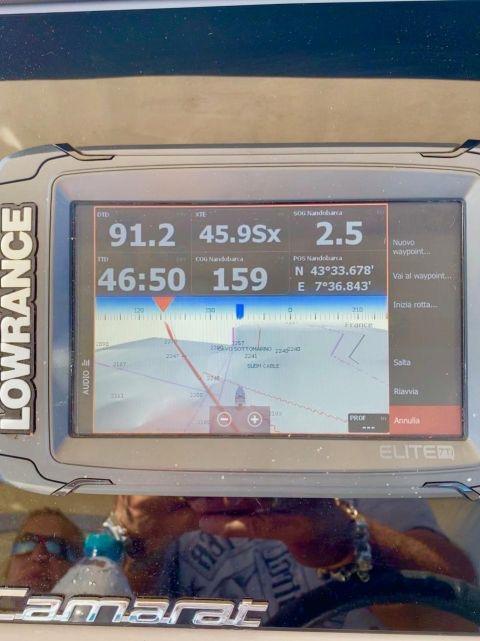 Modern navigation electronics include GPS/chartplotter, depth sounder and VHF. The boat features electric windlass, deck shower, telescopic swim ladder, bimini sun awning and Bluetooth audio system.
