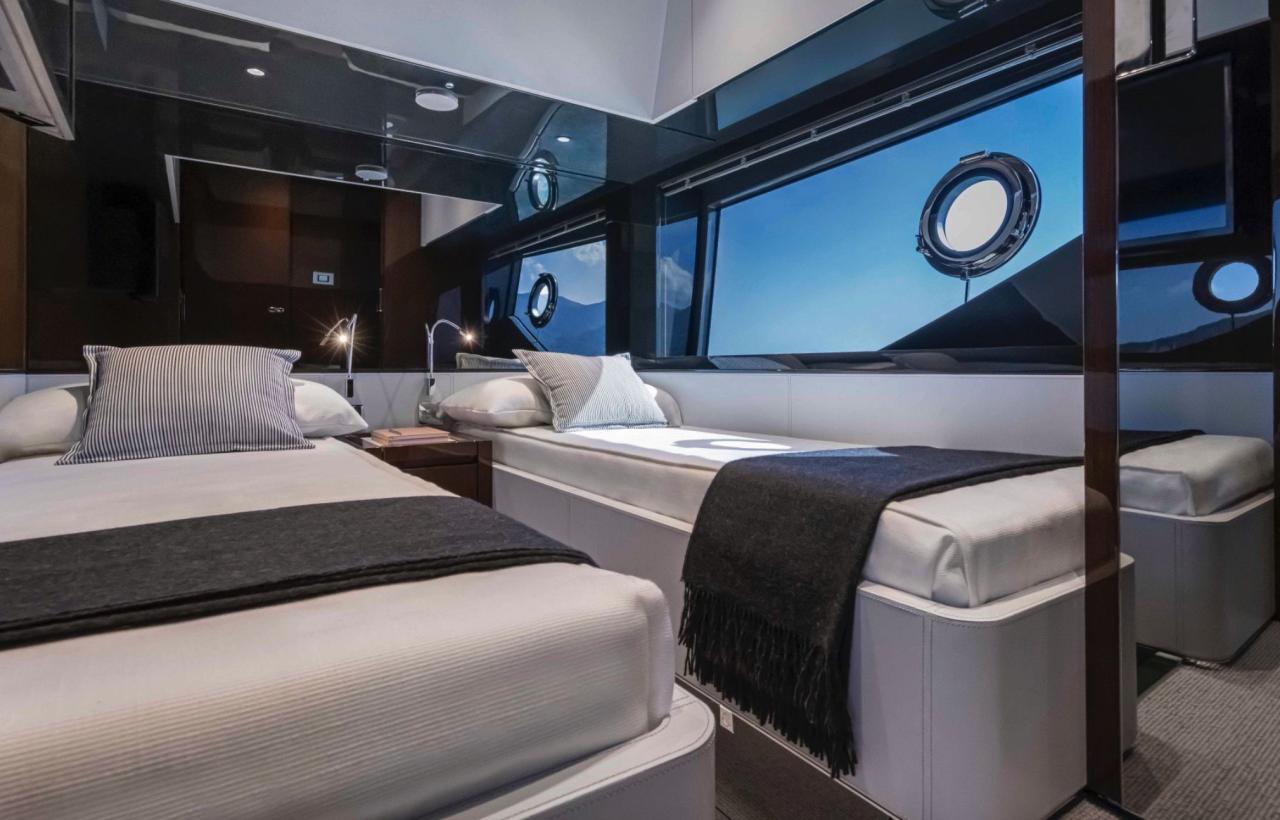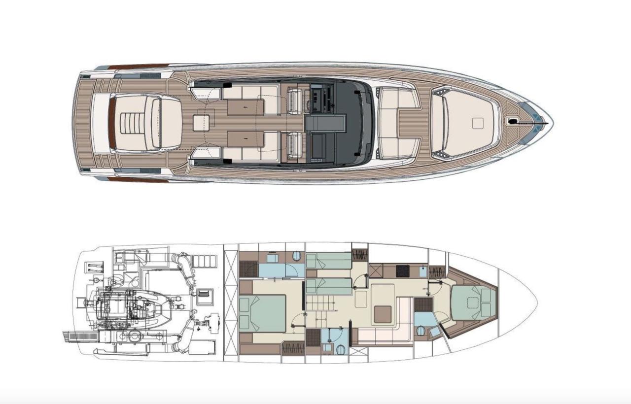 This particular unit is extensively equipped with premium options including a Seakeeper gyro stabilizer, Starlink internet system, watermaker, Garmin navigation suite, premium sound system and luxurious interior finishes. With large cockpit spaces, retractable bimini and advanced onboard technology, the Riva Diable is perfectly suited for both fast cruising and stylish entertaining.