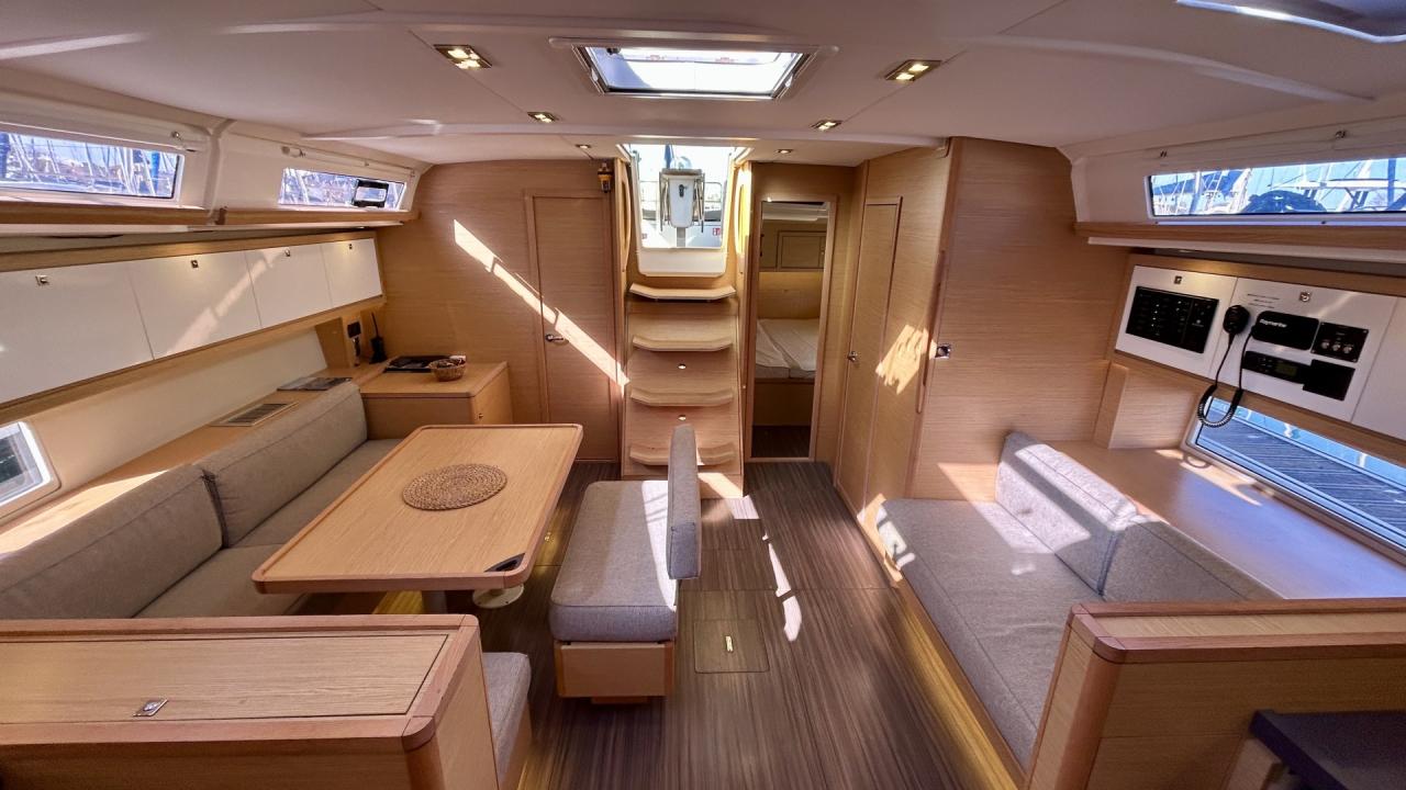 True to Dufour’s DNA, the cockpit is spacious, comfortable and designed for conviviality. This model benefits from a very complete equipment list: