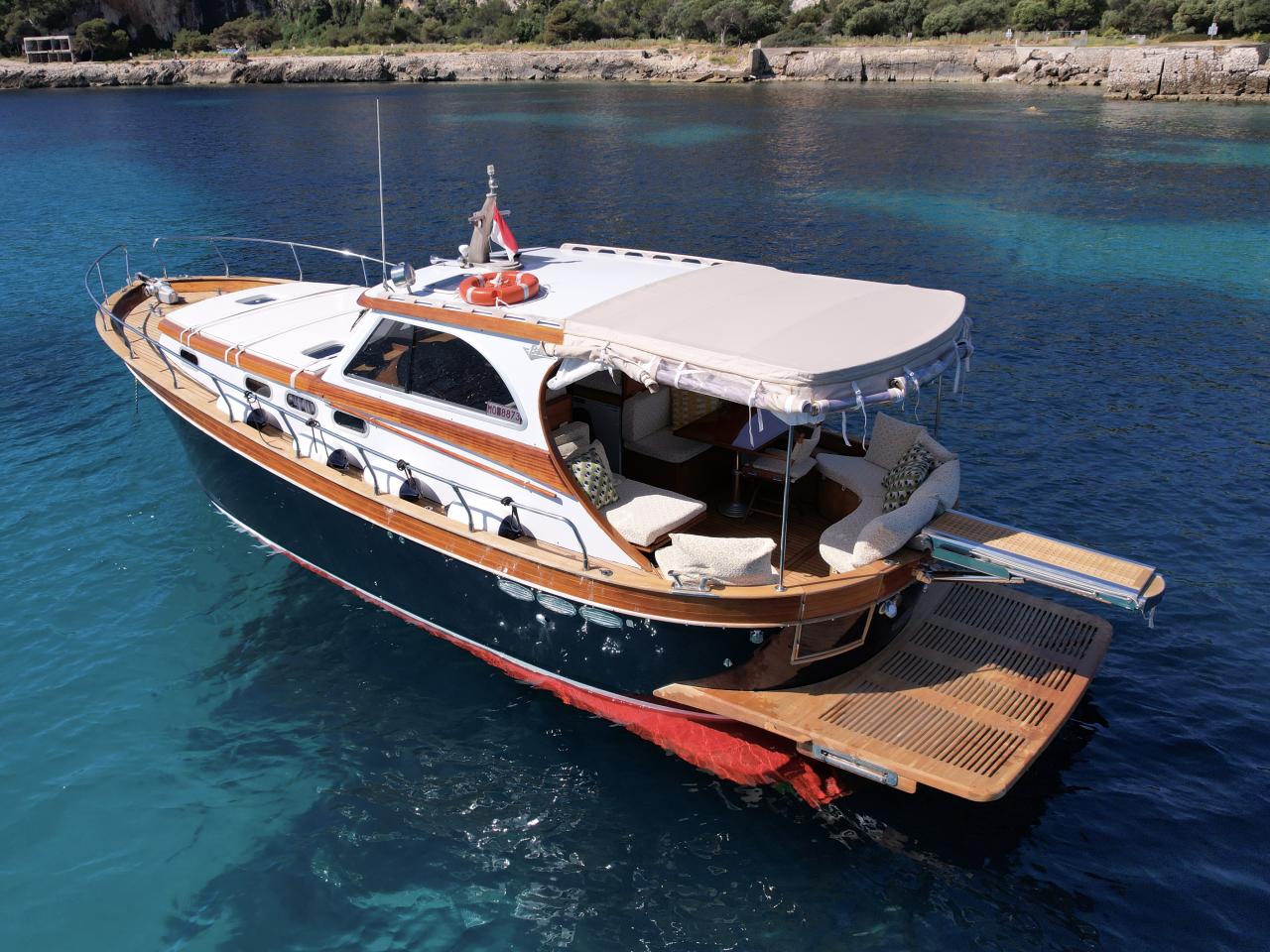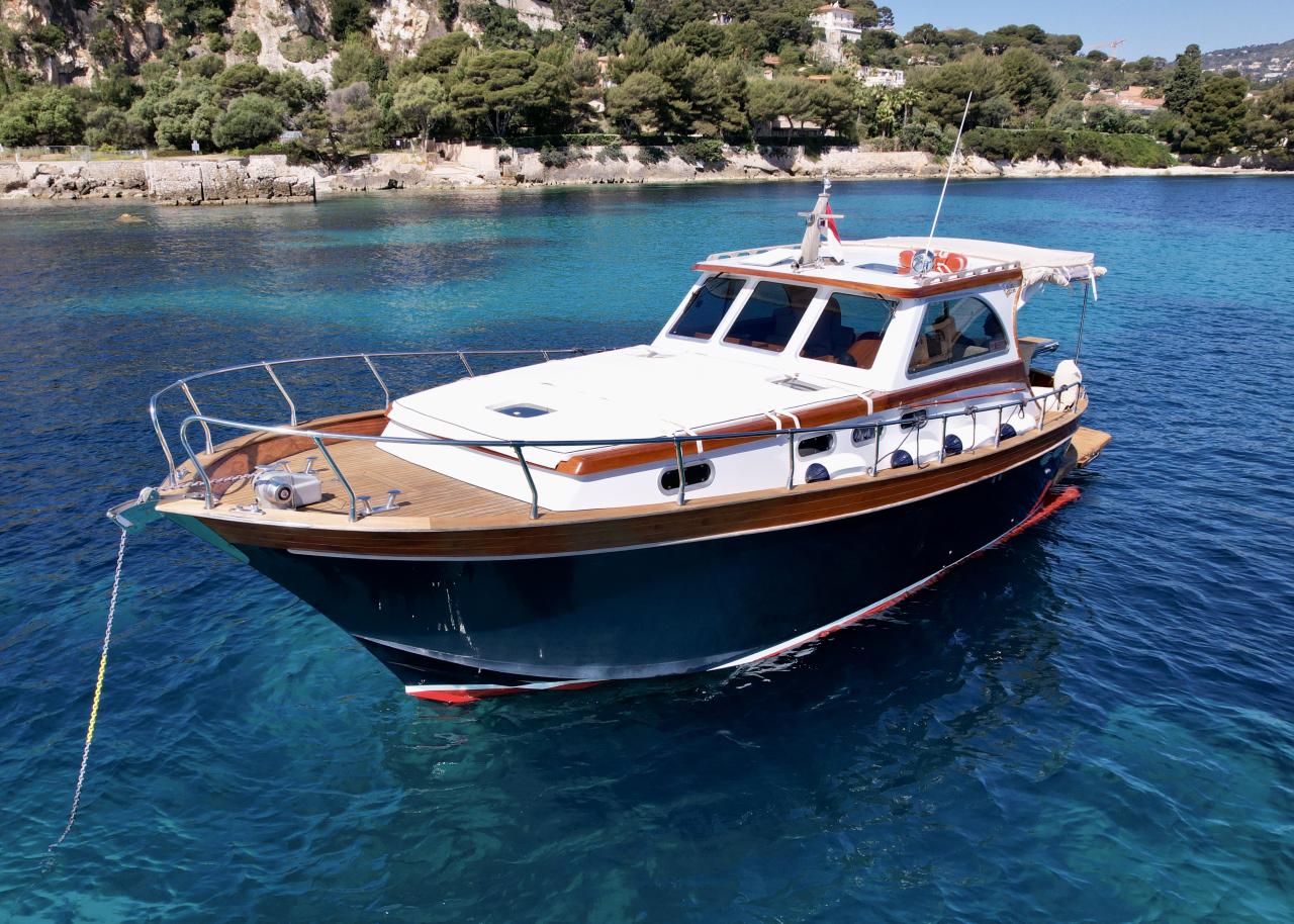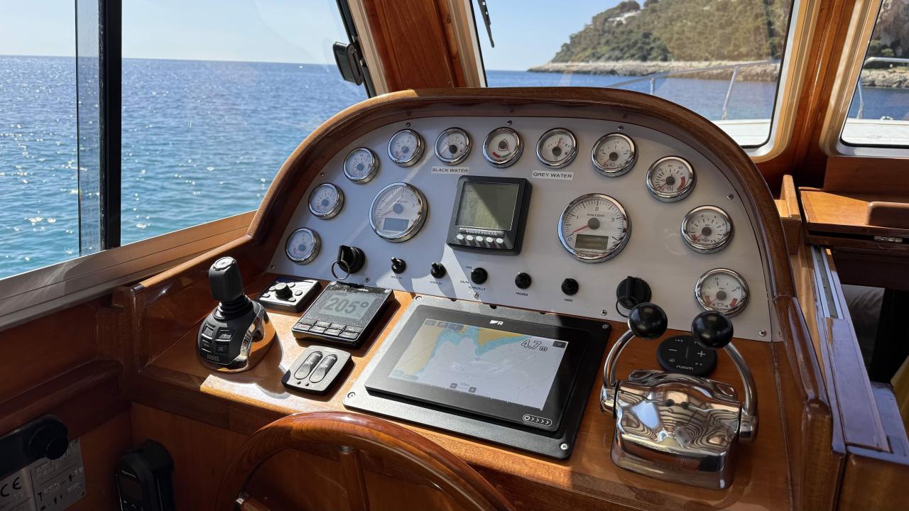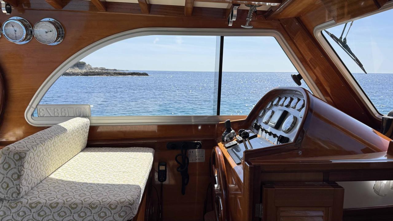 An 11.50-metre motoryacht combining performance, advanced connectivity and refined finish. Presented in showroom condition with fully renewed varnish and new teak throughout — ready to sail.